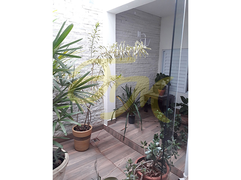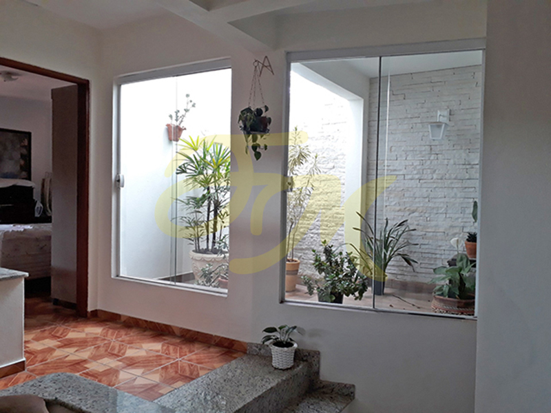 Sobrado com três dormitórios, sendo um deles suíte com sacada, sala, cozinha planejada, lavanderia coberta, jardim de inverno, churrasqueira, jardim, banheiro social, garagem para dois carros.