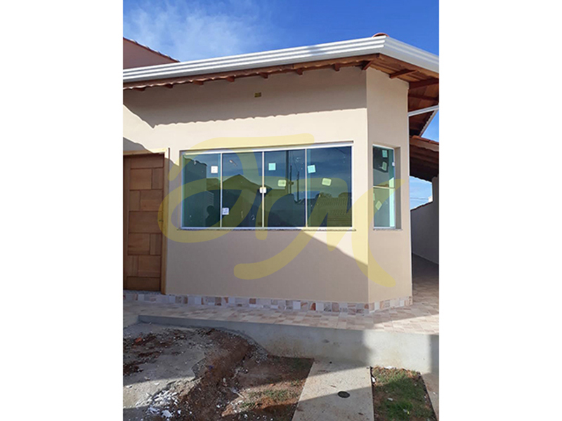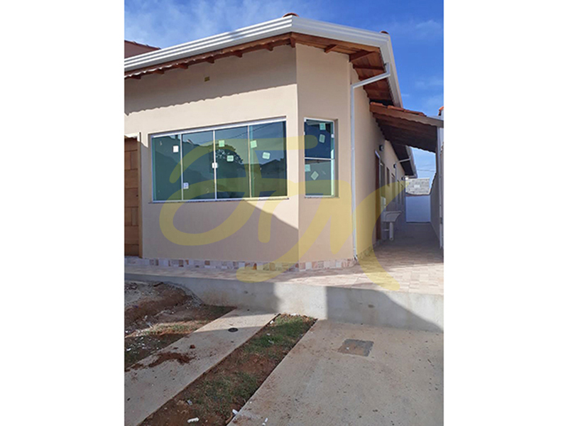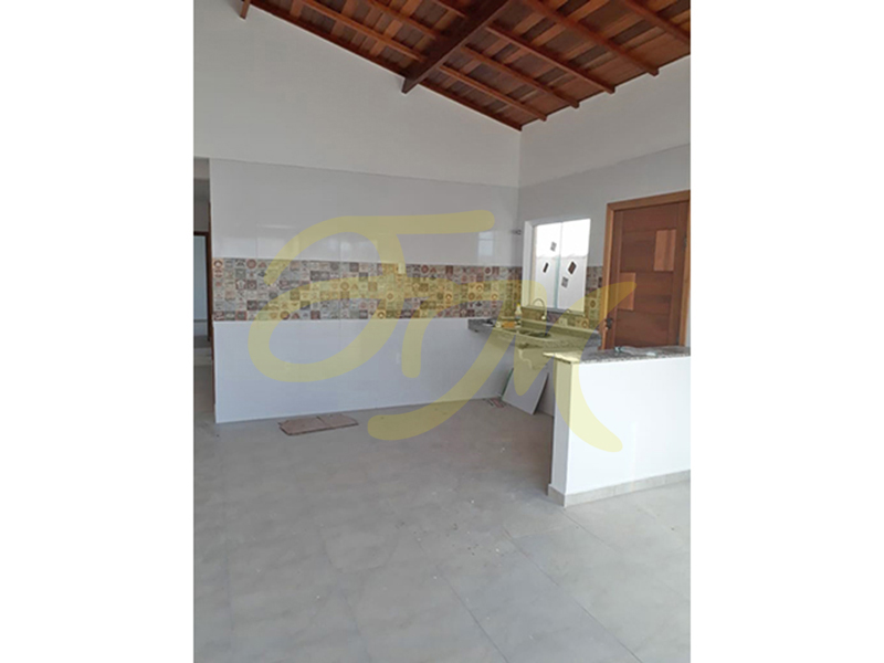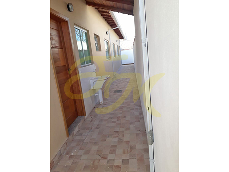 Casa térrea com três dormitórios, sendo um suíte, banheiro social, sala e cozinha conjugadas, lavanderia coberta, mais um banheiro, garagem para um carro (sem cobertura). |