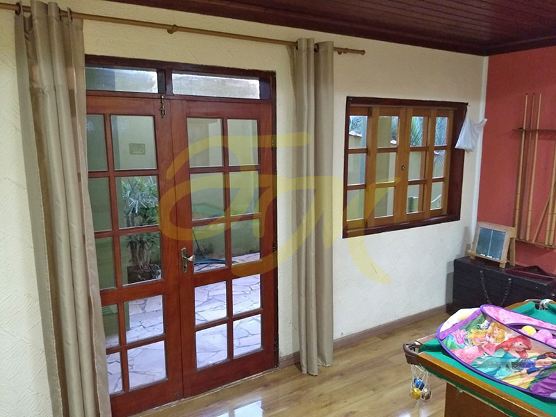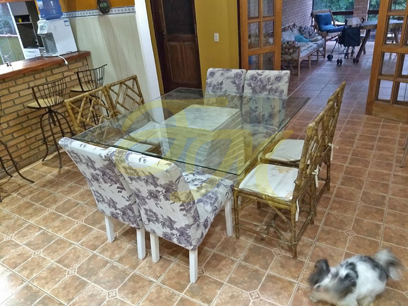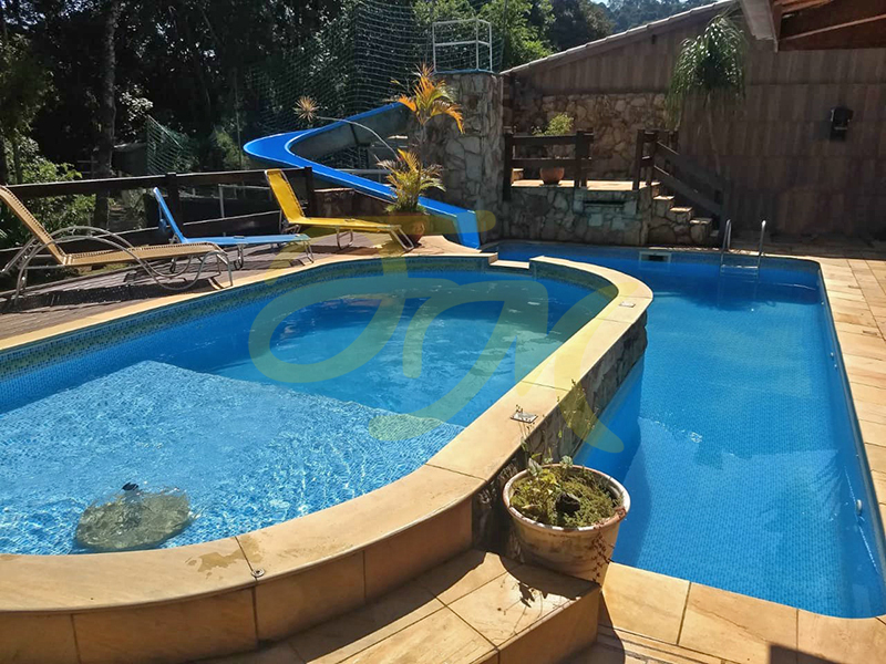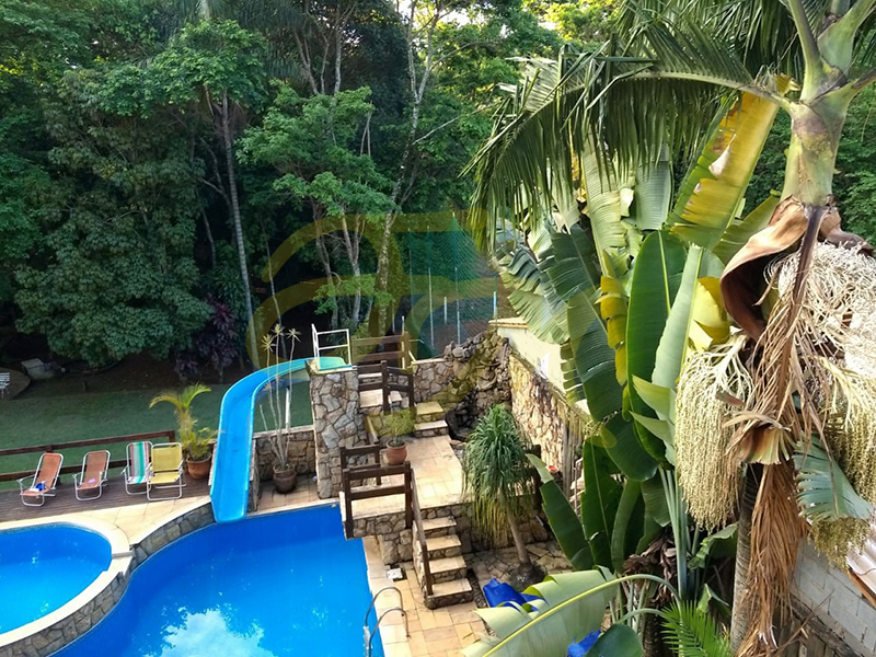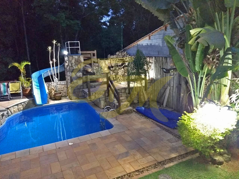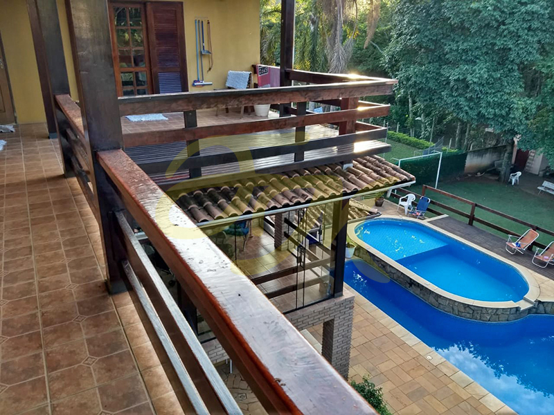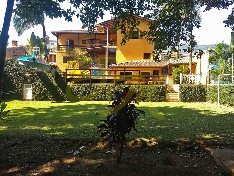 Sobrado em Condomínio Fechado (Recanto das Águas), com 05 suítes, 06 banheiros, 02 salas, lareira, salão de jogos, sauna, forno de pizza, fogão a lenha, 02 churrasqueiras, academia, 02 piscinas com toboágua, cascata e aquecedor, campo de futebol, bosque com árvores frutíferas e rio Jaguari no fundo do terreno.