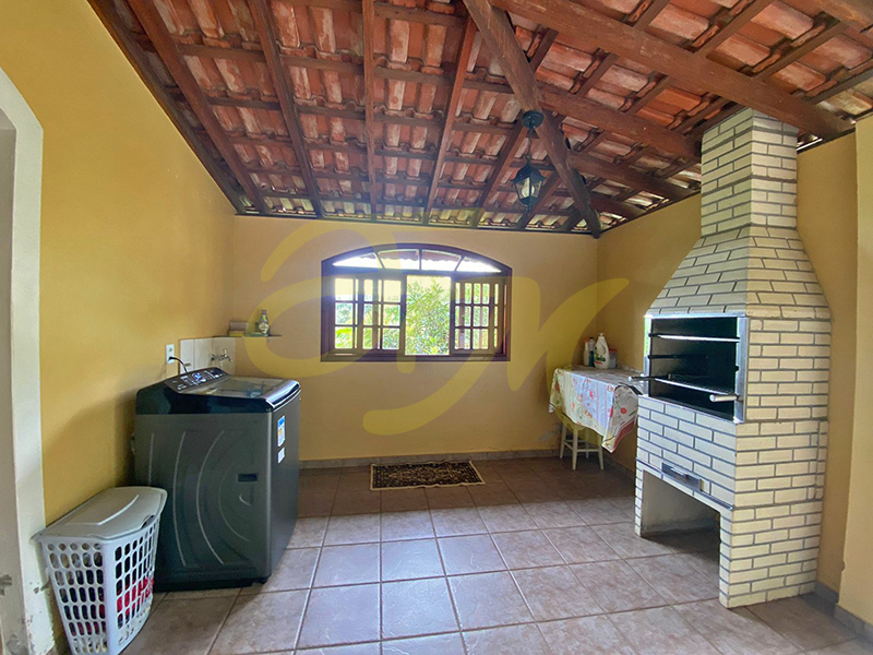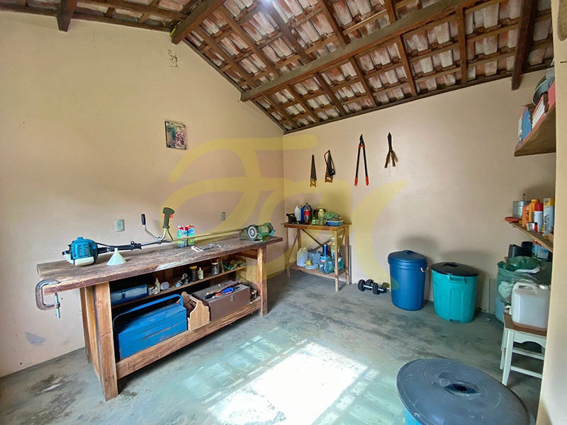 Imóvel com 2 quartos, banheiro social, cozinha e sala de estar, escritório. Área de serviço, churrasqueira, quintal gramado, pomar, oficina e galinheiro.