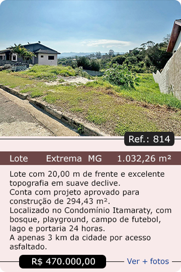 Lotes em Extrema MG, Itapeva MG, Vargem SP e outras cidades