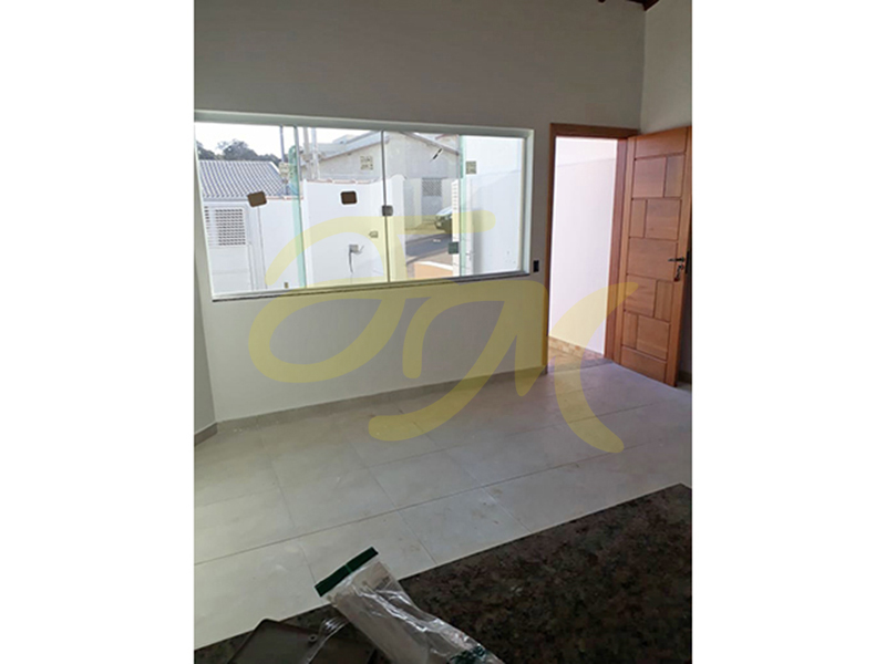 Casa térrea com três dormitórios, sendo um suíte, banheiro social, sala e cozinha conjugadas, lavanderia coberta, mais um banheiro, garagem para um carro (sem cobertura). |