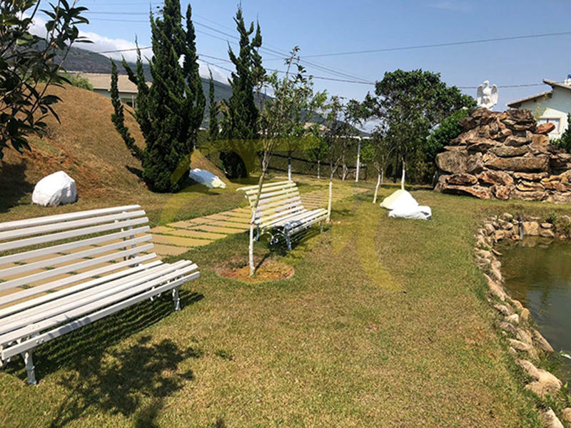 Composto por edícula com banheiro social, churrasqueira, grande área gramada, ótima topografia (plana), estufa com aproximadamente 170,00 m² de área construída, canil, viveiro, lago com cascata.