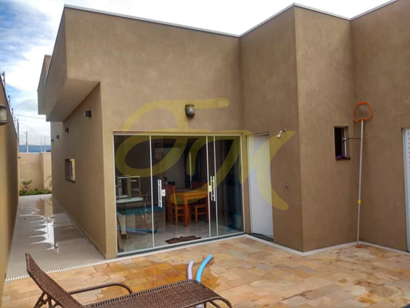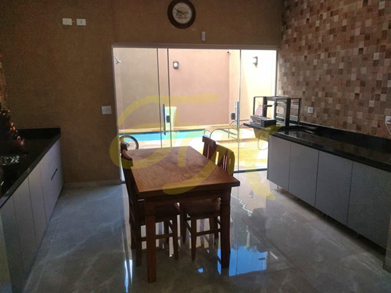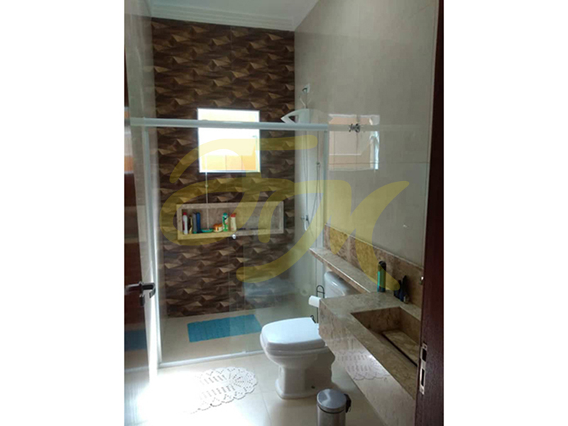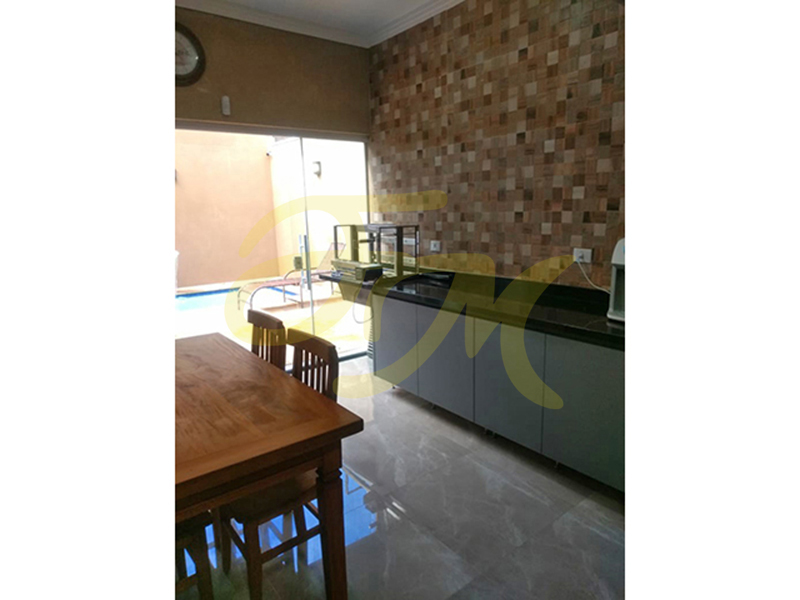 CASA TÉRREA composta por 3 dormitórios, sendo 1 suíte, sala com pé-direito alto, cozinha planejada, wc social, área de churrasqueira, piscina. Garagem para 2 carros. Lindo acabamento, rica em armários planejados. |