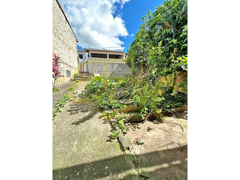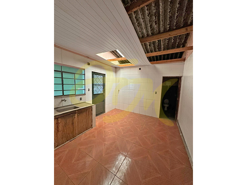 Casa no pavimento superior com dois dormitórios, cozinha, banheiro, ampla até coberta.