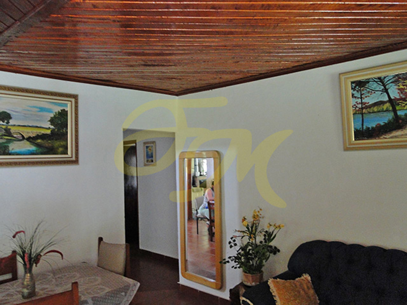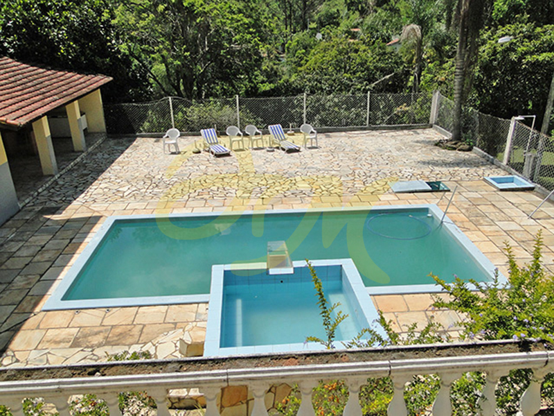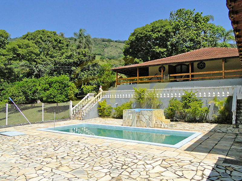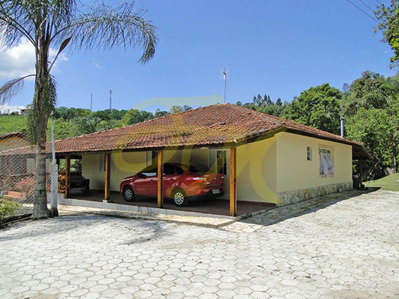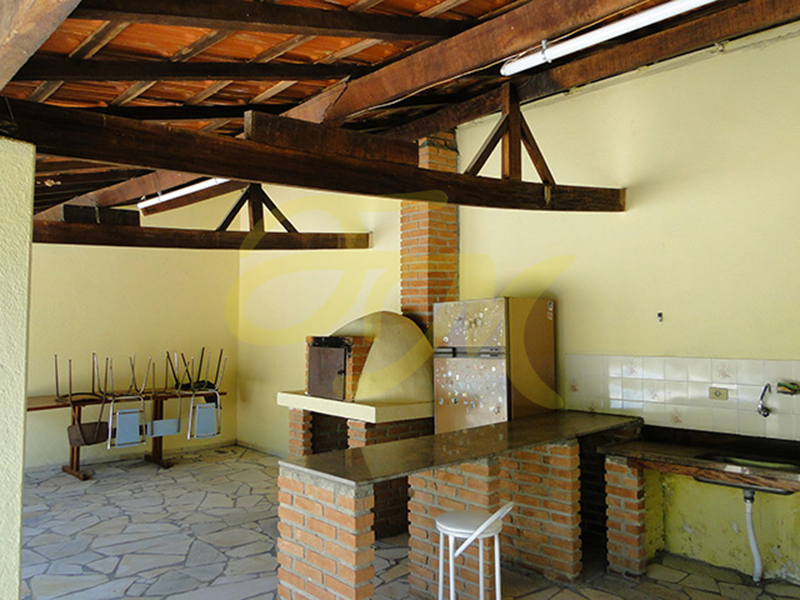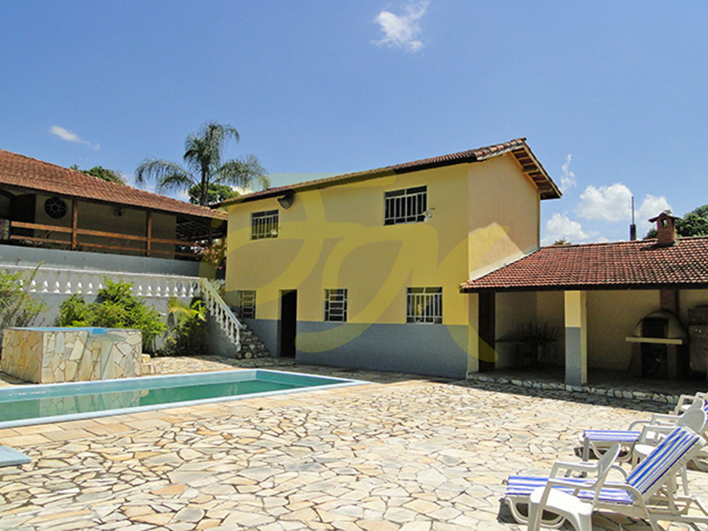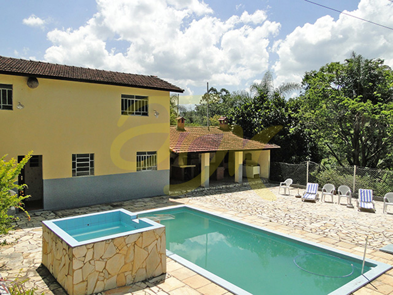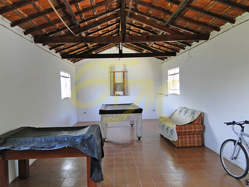 Chácara com casa avarandada, 3 dormitórios, sala, cozinha, cozinha caipira, banheiro, área de serviço, área de lazer com salão de jogos, churrasqueira, forno de pizza, piscina, campo de futebol, casa de caseiro, lago, depósito para ferramentas e materiais. |
