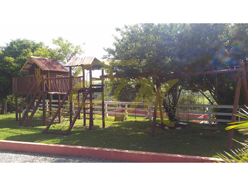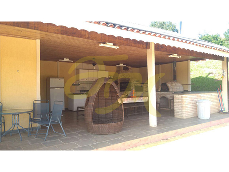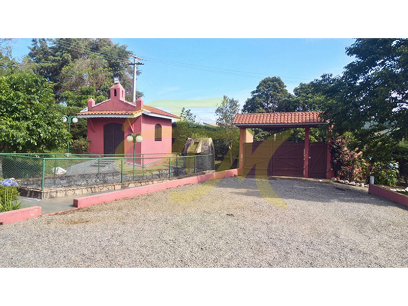 Chácara com casa com três dormitórios, sendo um suíte com banheira, banheiro social, sala de estar com lareira, espaço gourmet com churrasqueira, piscina, forno e fogão a lenha, salão de jogos, campo de futebol, pomar, casa para caseiro. |