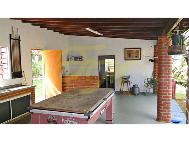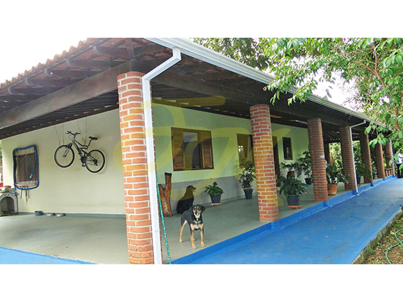 Chácara com casa com 300,00 m² de área construída, com três dormitórios, sala de jantar, cozinha, duas salas, um banheiro social, varanda, área gourmet com churrasqueira, forno e fogão a lenha, mais um banheiro, lavanderia coberta, duas piscinas, sendo uma infantil e outra para adultos, tanque de peixe e um lago em construção, pomar, horta.