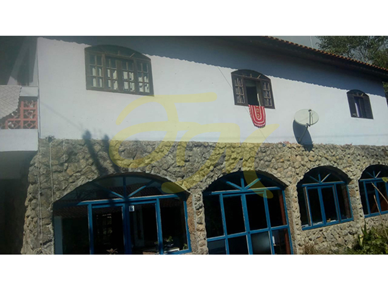 2°casa com restaurante na parte superior, três quartos, uma cozinha e sala grande, mais dois banheiros externos. Dois chalés com lareira em cima da pedra, hidromassagem, piscina 4x10, gramado, área de fogueira com bancos ao redor, com trilhas belíssimas.