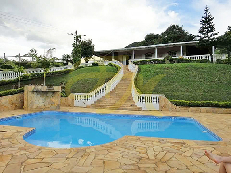 Belíssima chácara com casa estilo colonial avarandada, com 225,00 m² de área construída, com 3 dormitórios, sendo 1 suíte, banheiro social, cozinha, sala de estar, sala de jantar, sala de TV; salão de festa com 325,00 m² de cobertura, com cozinha, quarto de hóspedes, churrasqueira, piscina com prainha e cascata; área para campo, lavanderia, canil, quarto de ferramentas. Acesso em bloquete. A 6 km da Rodovia Fernão Dias. |