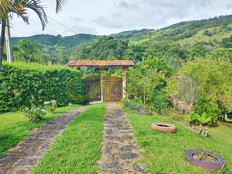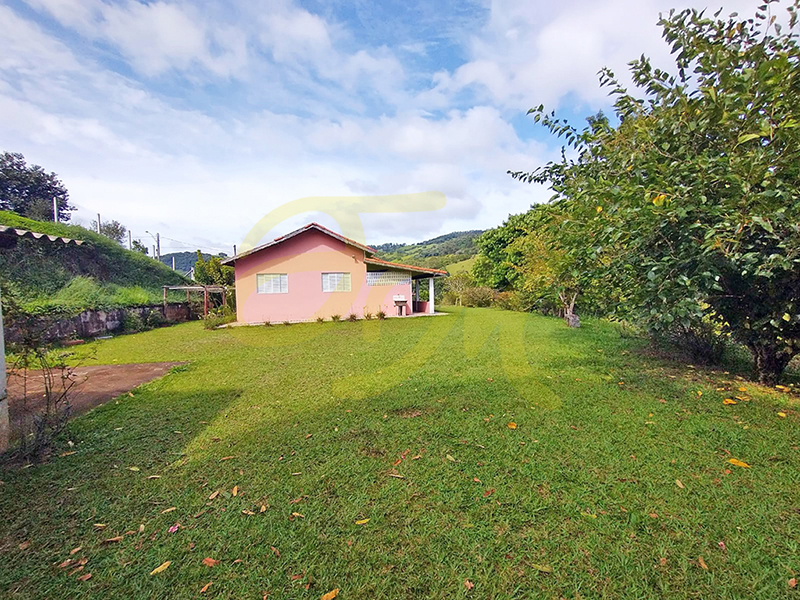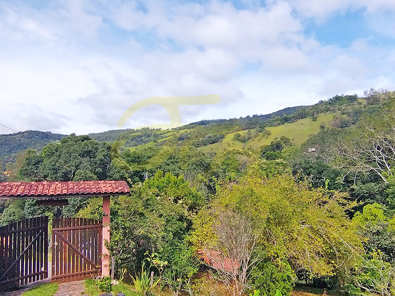 Chácara com casa de 3 dormitórios, sala, cozinha, banheiro, área de serviço, fogão a lenha; quarto de despejo, árvores frutíferas, lago, vista privilegiada.