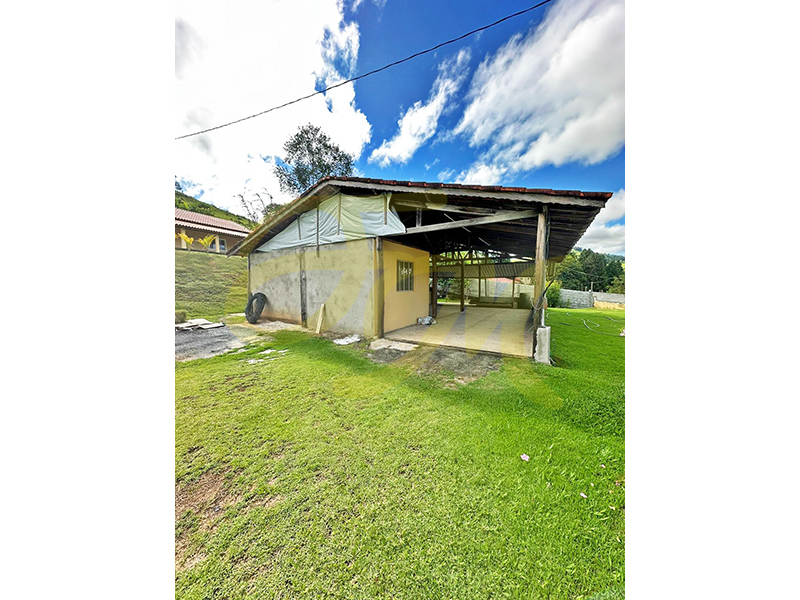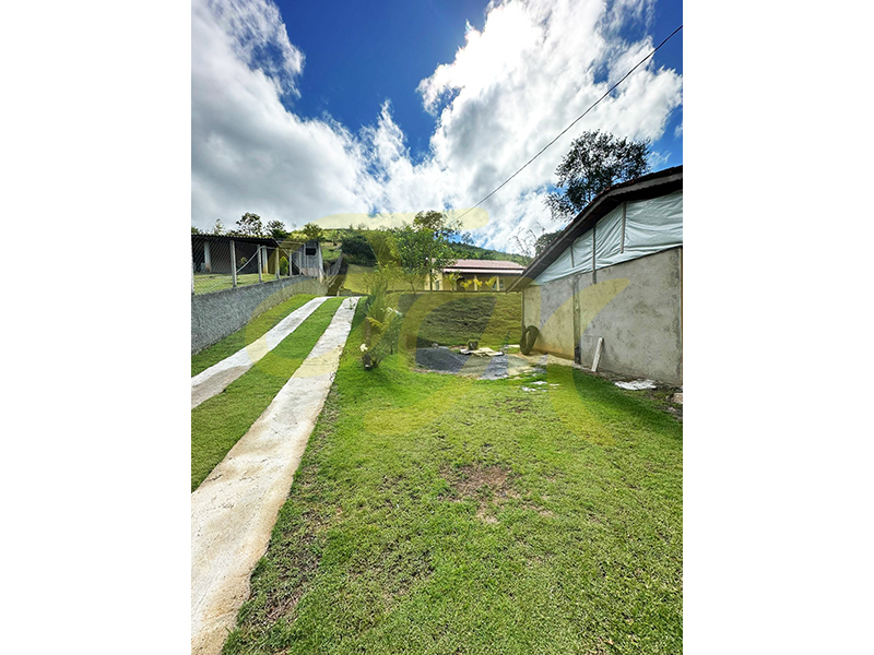 Chácara com casa de dois dormitórios, sala, cozinha, banheiro, varanda em L, área de serviço; salão com 100,00 m² com 2 dormitórios, WC social, cozinha externa, pomar, frente murada, área toda cercada de alambrado.