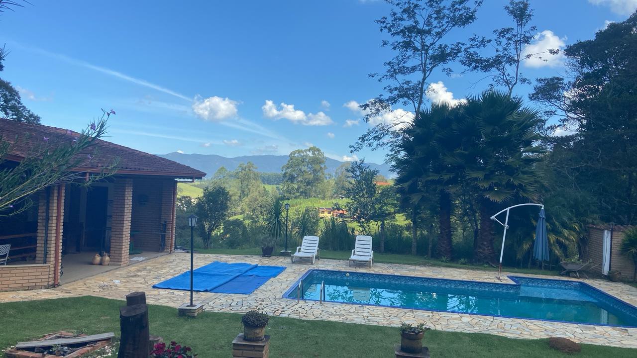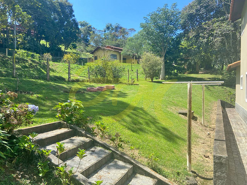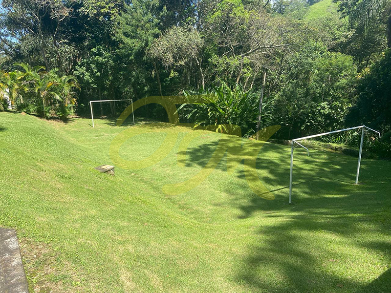 Campo de futebol, pequeno lago para peixes com água de nascentes e um riacho que percorre os fundos da chácara, além de mata virgem no fundo do terreno.