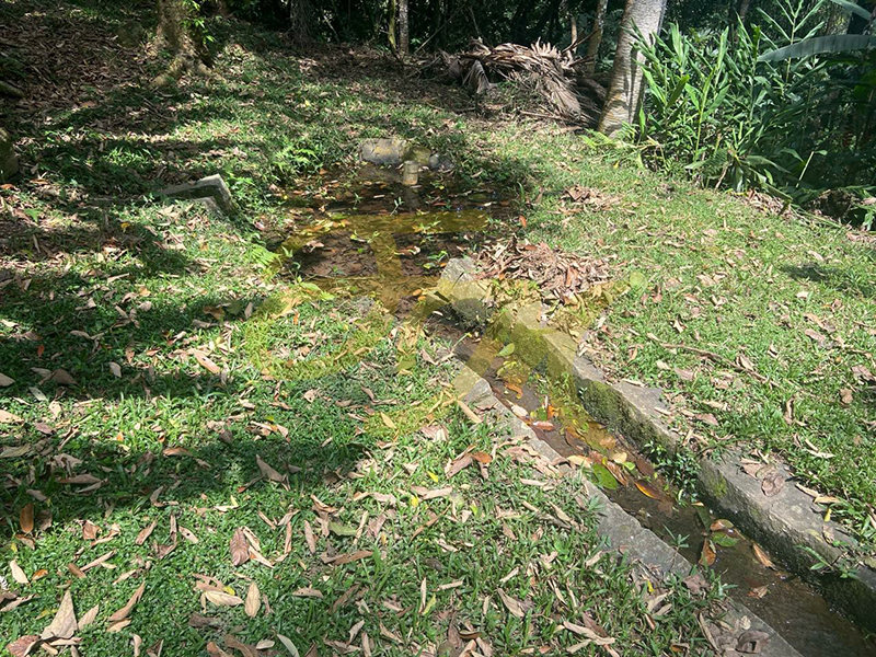 Água de mina e através de poço caipira, pomar produzindo com diversas árvores frutíferas.