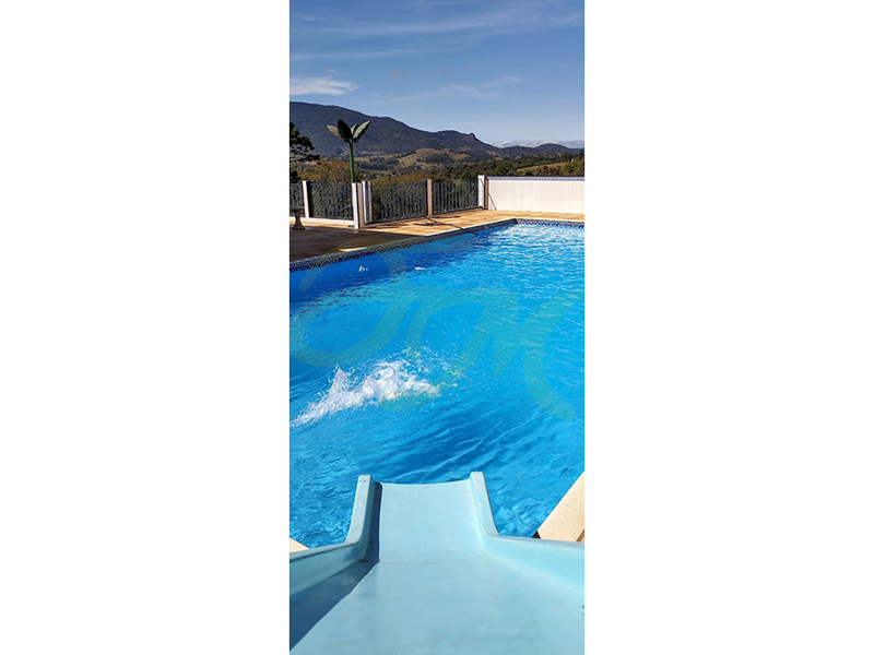 • Piscina de alvenaria revestida em fibra de vidro, degraus, prainha, luzes, vista panorâmica 12x6 metros, com o passeio em volta com pedras mineiras, banheiro e chuveirão, toda gradeada para segurança das crianças, recém-restaurada;