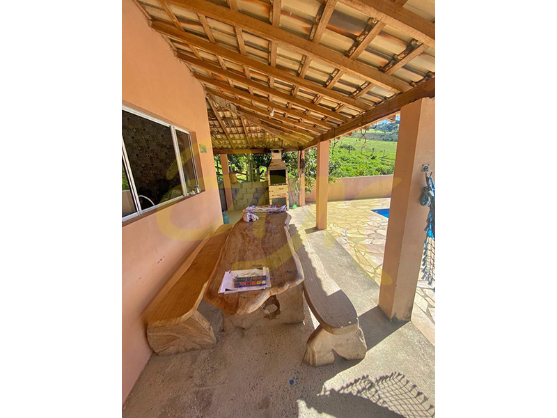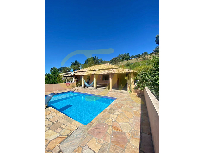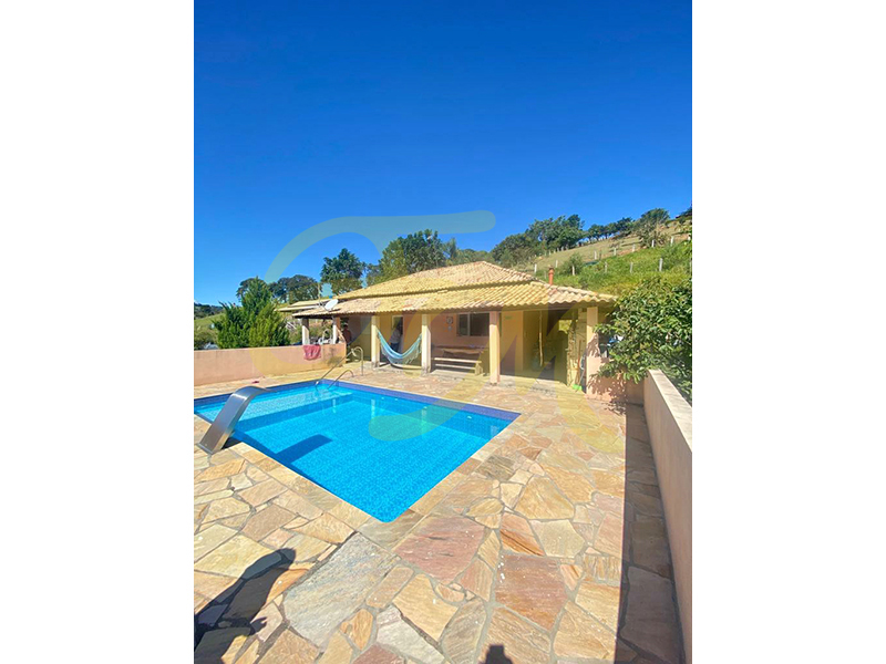 Casa com 2 dormitórios, WC social, sala, cozinha com fogão a lenha, piscina, churrasqueira. Acesso todo asfaltado. Localizada a 10 km da Fernão Dias. |