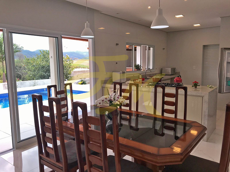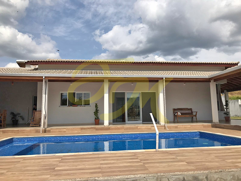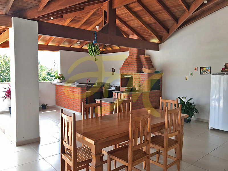 Casa no Condomínio Recanto Jaguari. Casa composta por 3 suítes, sala estar, cozinha, wc social, garagem para 04 autos; área gourmet com churrasqueira, fogão a lenha e piscina. |