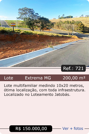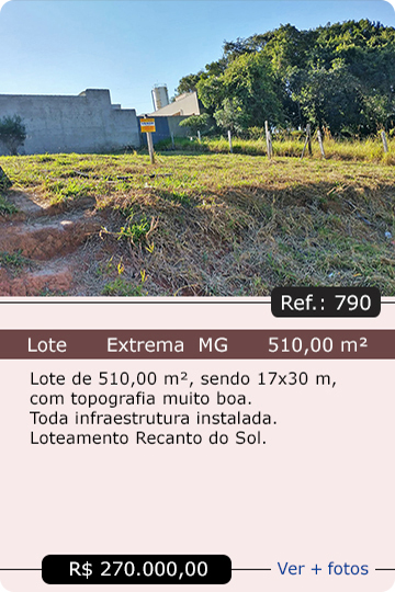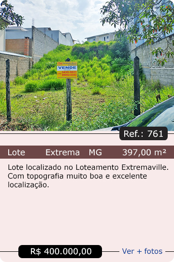 Lotes em Extrema MG, Itapeva MG, Vargem SP e outras cidades