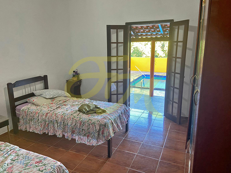 Sítio com casa composta por 3 dormitórios, sala, cozinha, WC social. Área de lazer com piscina, churrasqueira e WC externo. 2 lagos, área de pastagem e cocheira. |